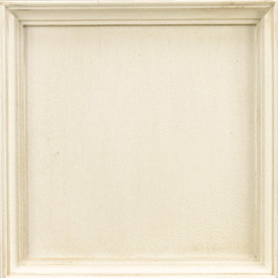 An opaque, clean white finish with a very slight intermittent rub-through along the perimeter.