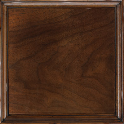 A rich medium value clear brown finish reminiscent of a lightly burnished antique pecan with a medium sheen level.
