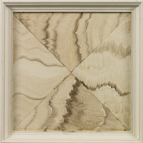Available only on MH10314. A hand-painted decorative finish resembling exotic Palisander wood grain laid out in a patchwork grid. Each item will be unique.