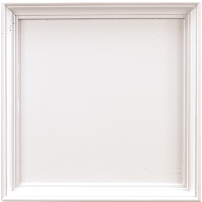 An opaque, clean white finish with a very slight intermittent rub-through along the perimeter.